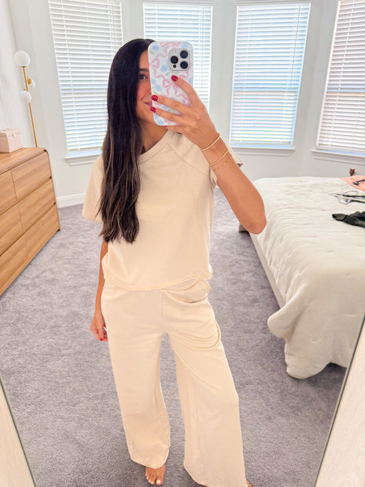 creme brûlée striped pants