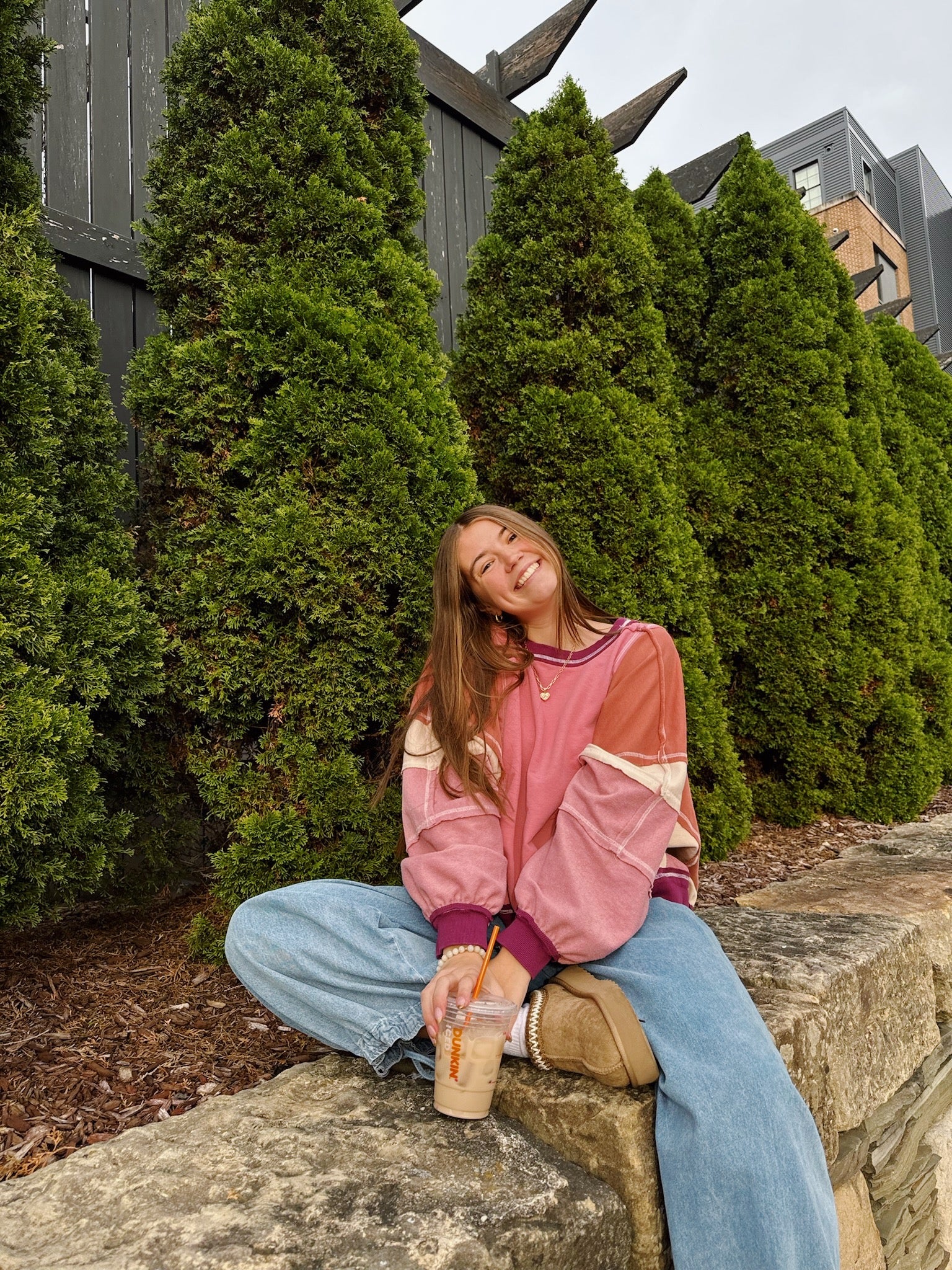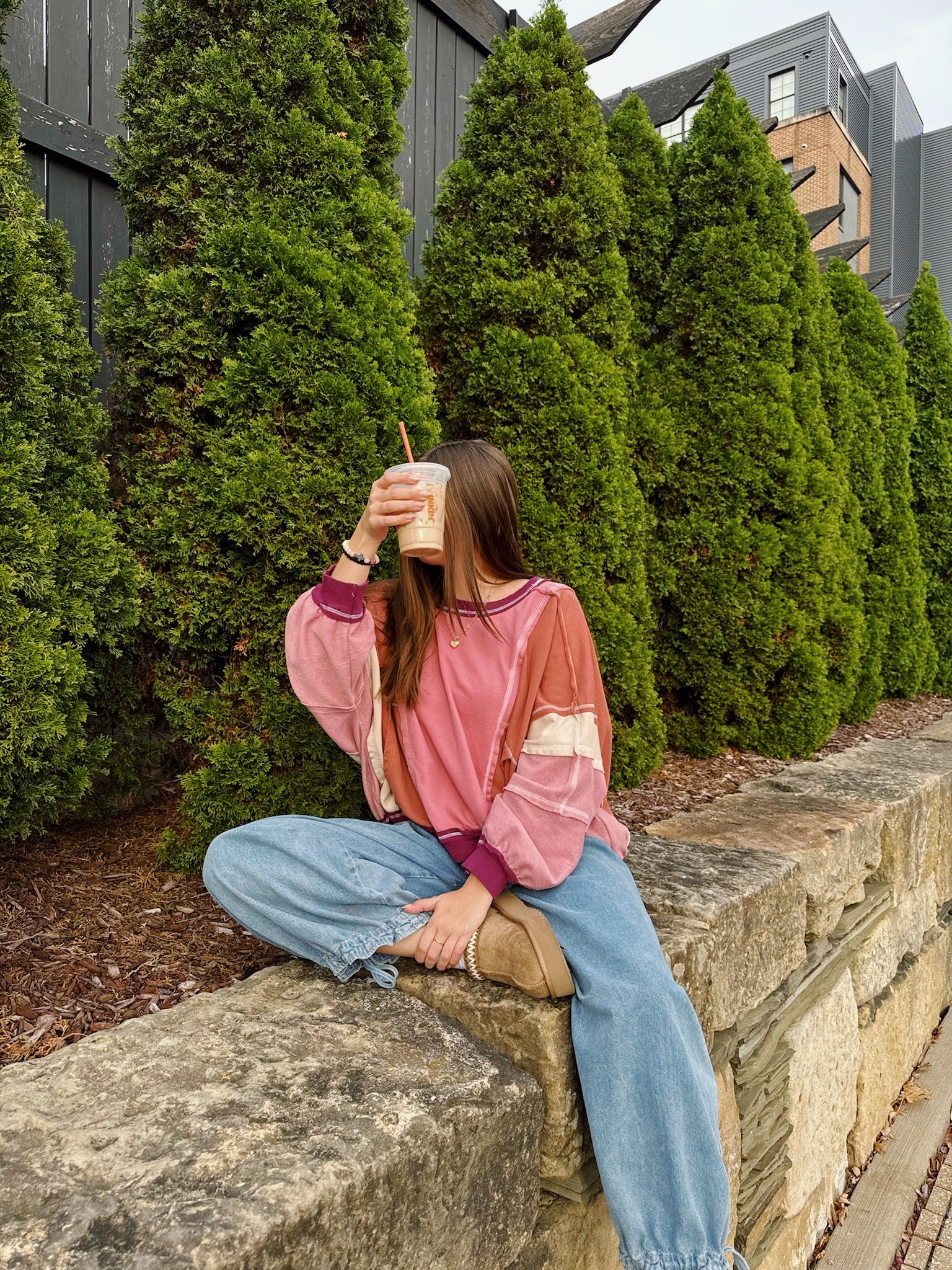 - soft berry/mauve color block pullover (same fit as our best selling "Sherbet sunday pullover!!"