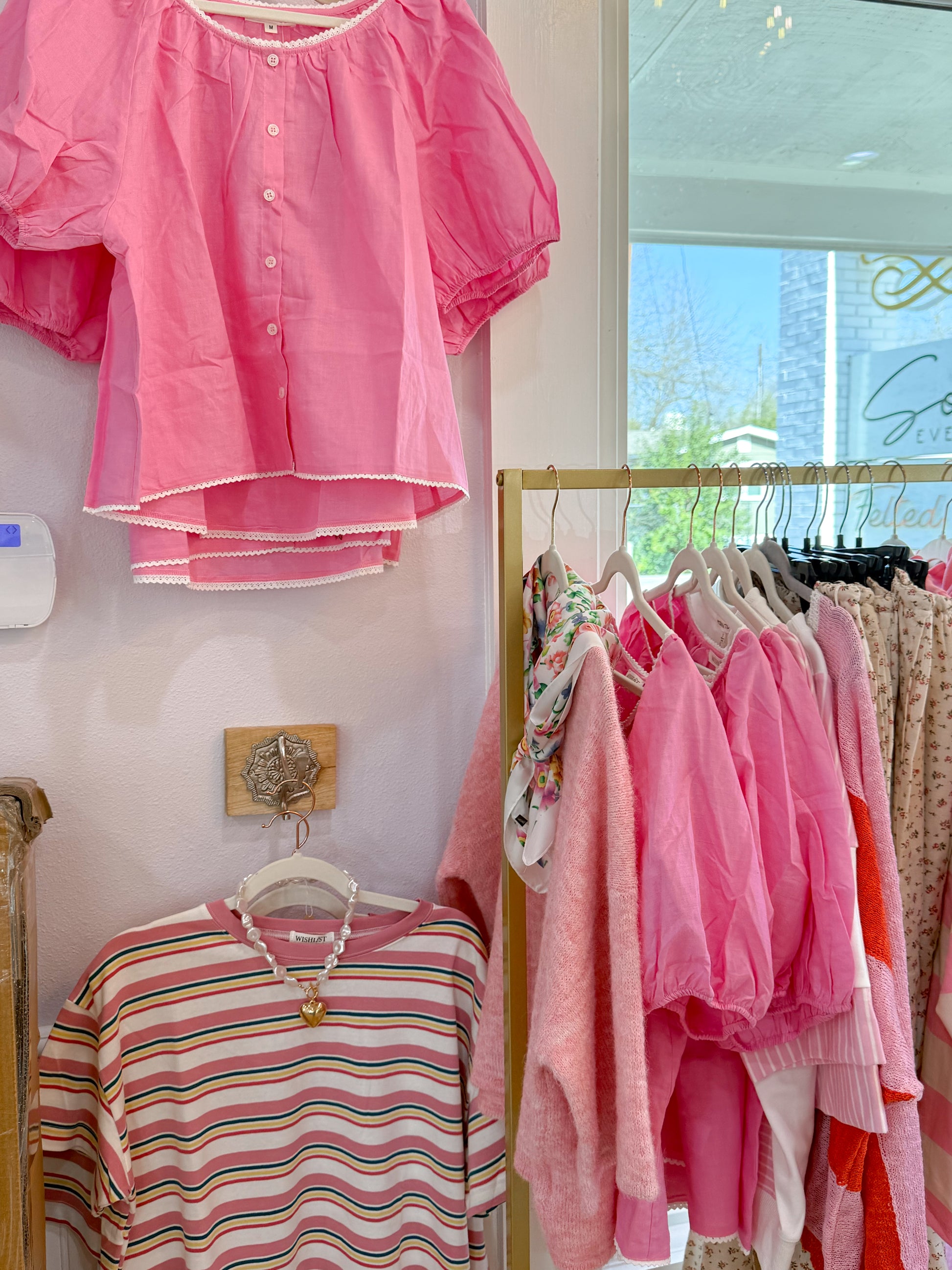 - hot pink top with lace trim
